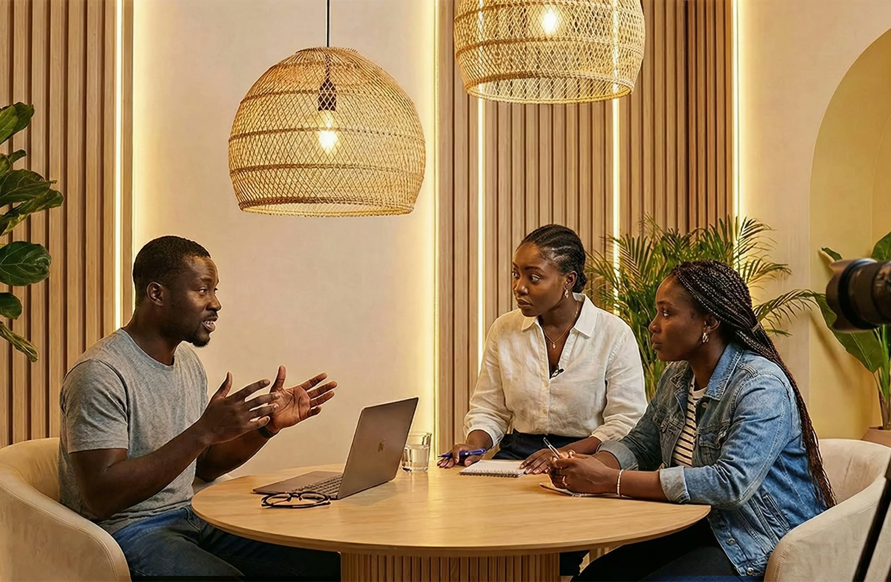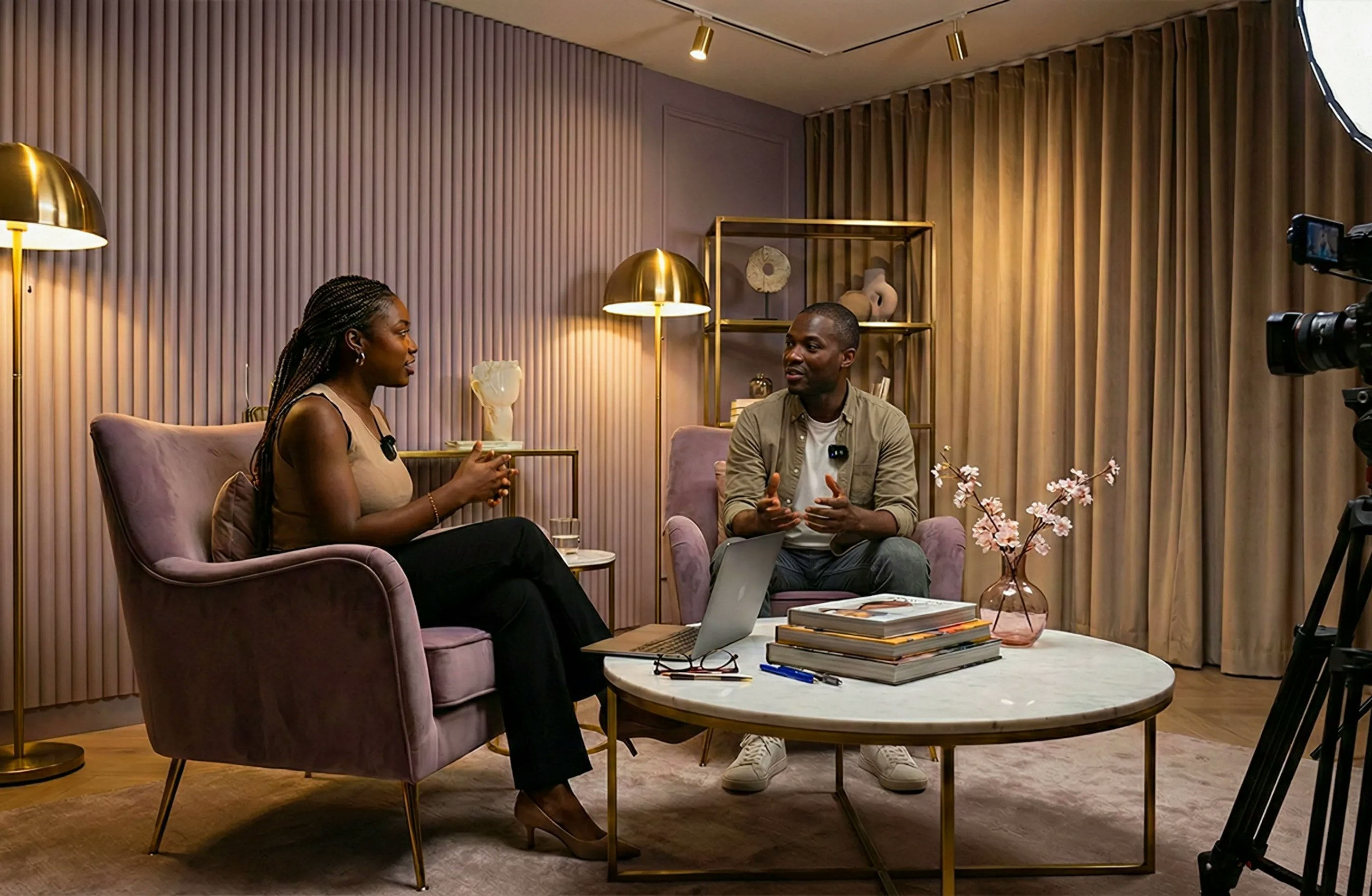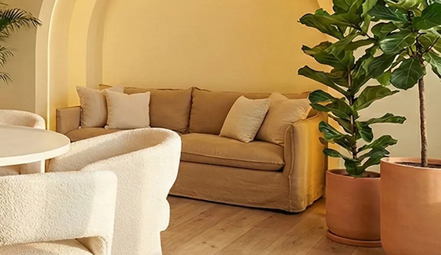 Un espace lounge spacieux et chaleureux, baigné d’une lumière dorée, qui peut accueillir 4 à 5 personnes en toute décontraction.