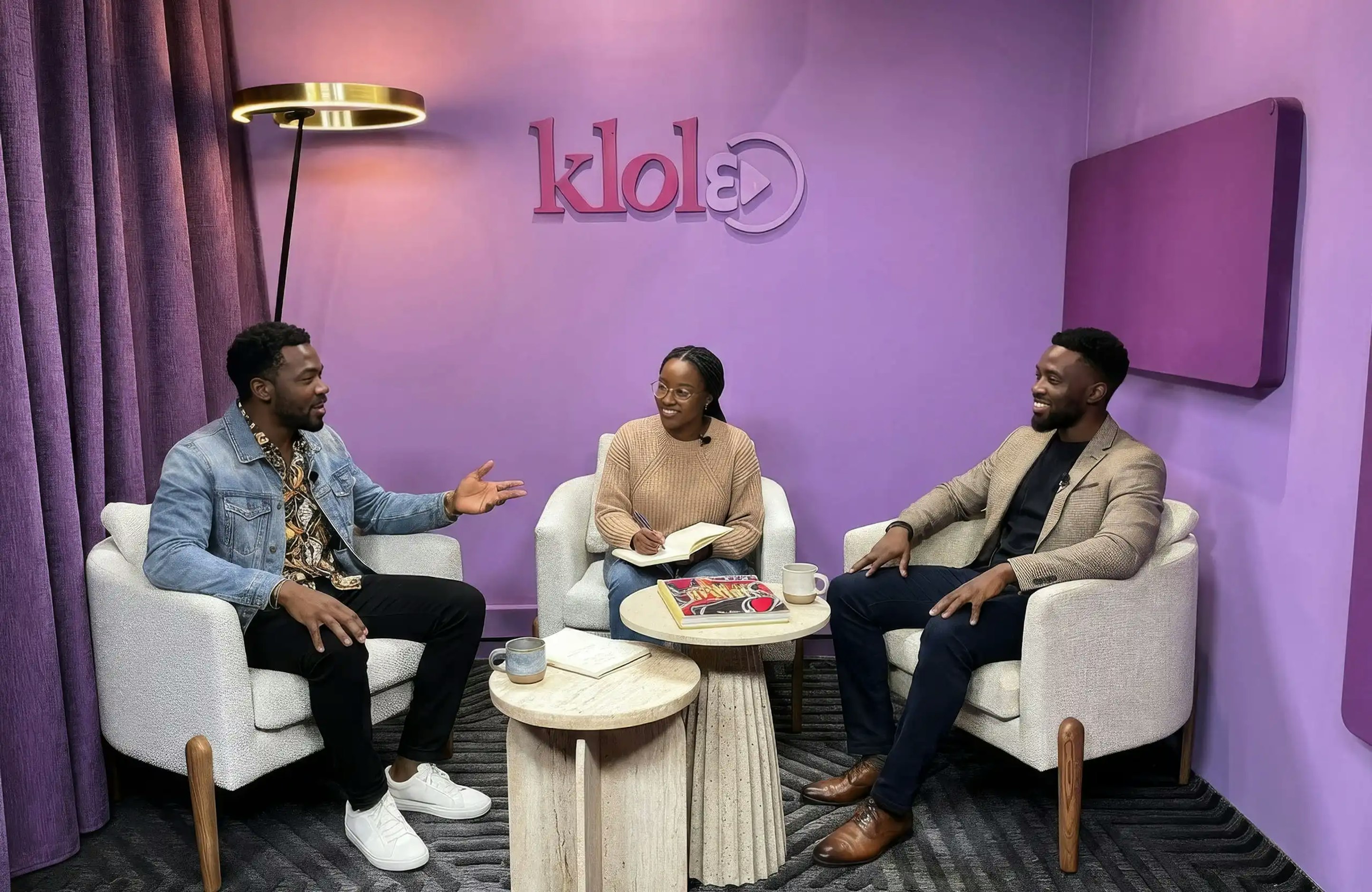 Espace Signature Klolé, une table ronde + 3 fauteuils.